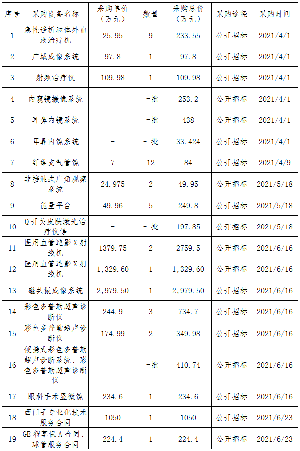 梅州市人民医院2021年第二季度医疗设备政府采购结果公示如下: