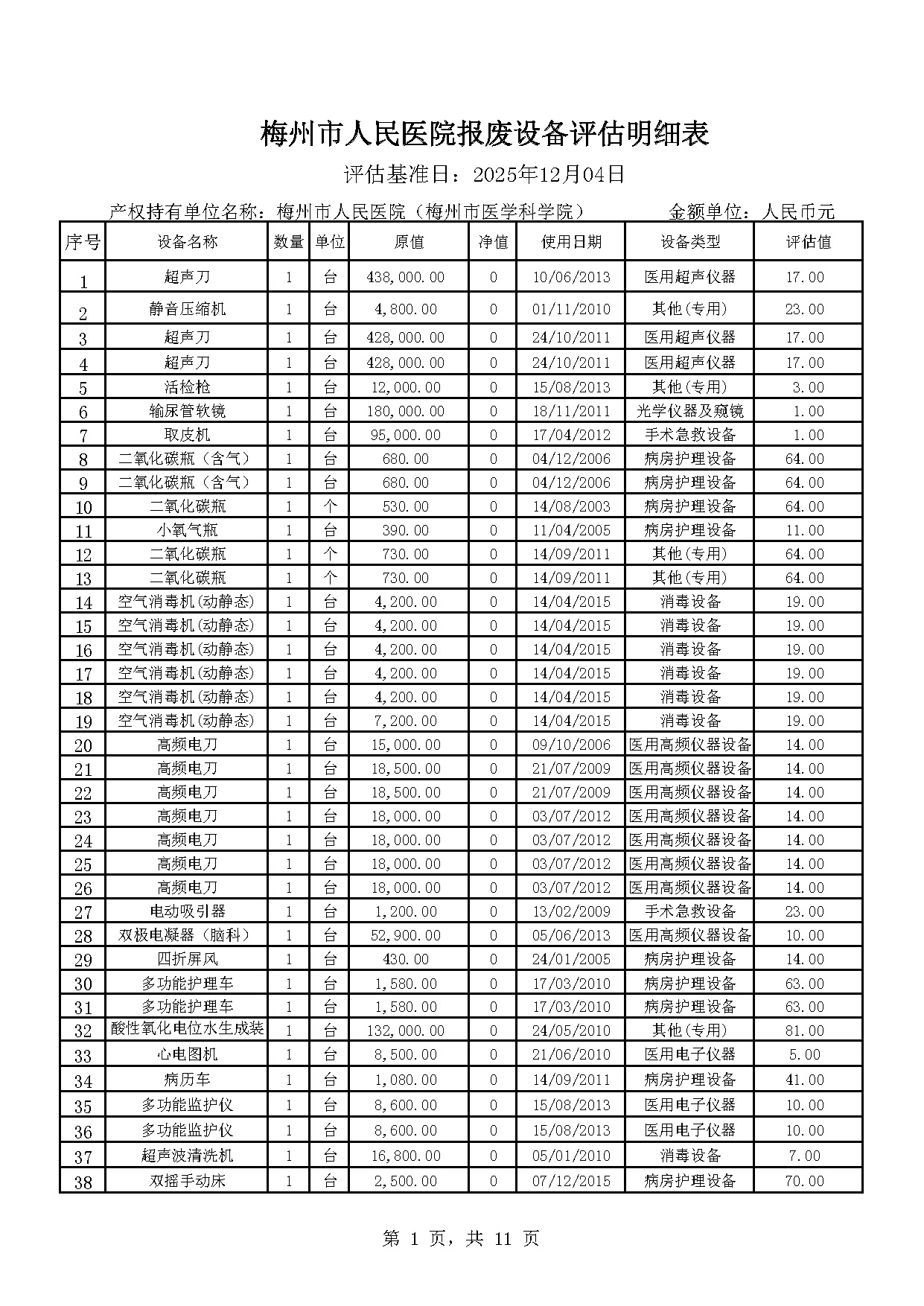 一、资产概况:医疗设备类资产,账面原值5020389.34元。