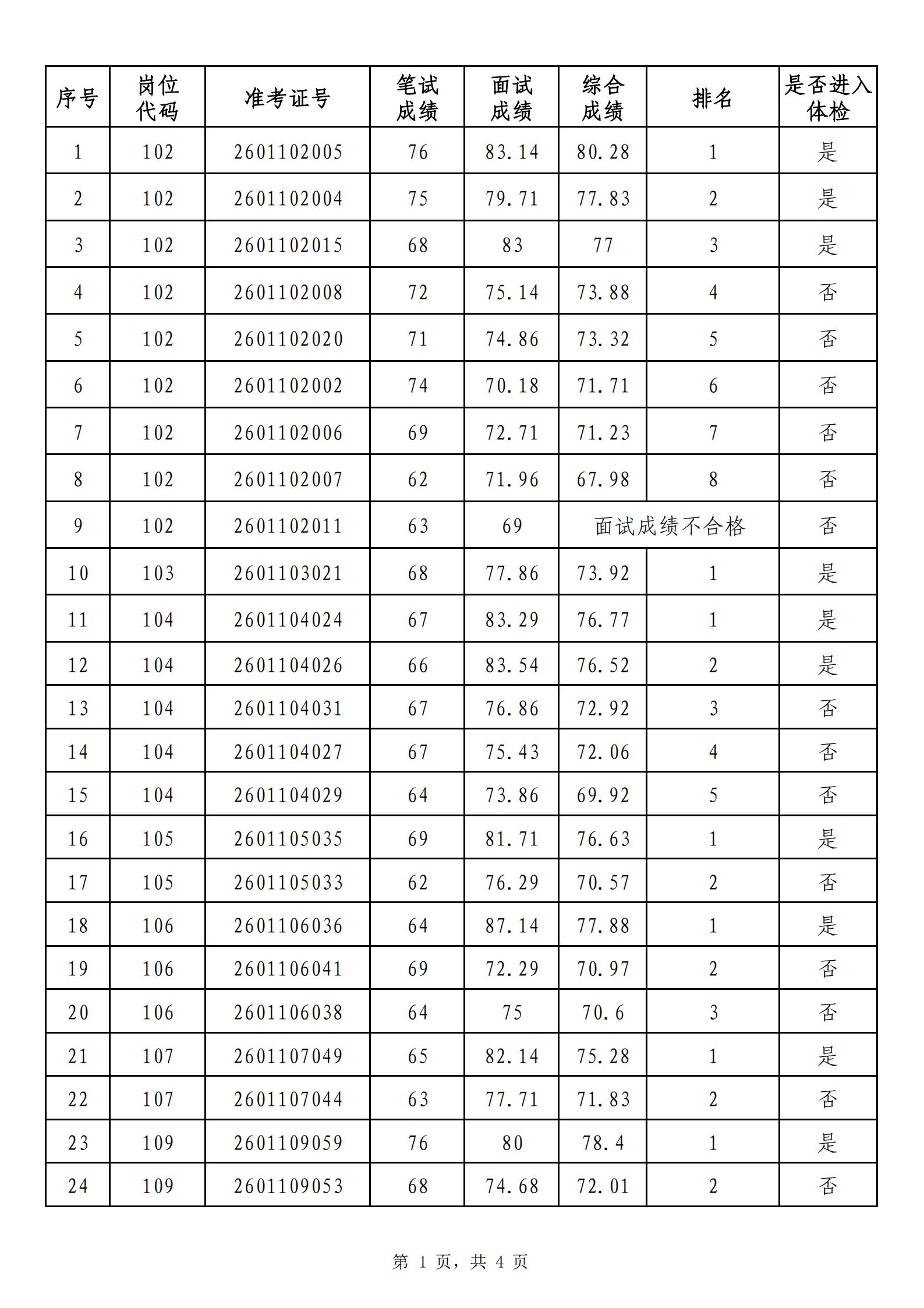 根据《梅州市人民医院2026年第1批公开招聘公告》要求,经笔试、面试等程序,现将梅州市人民医院2026年第1批公开招聘综合成绩公布如下: