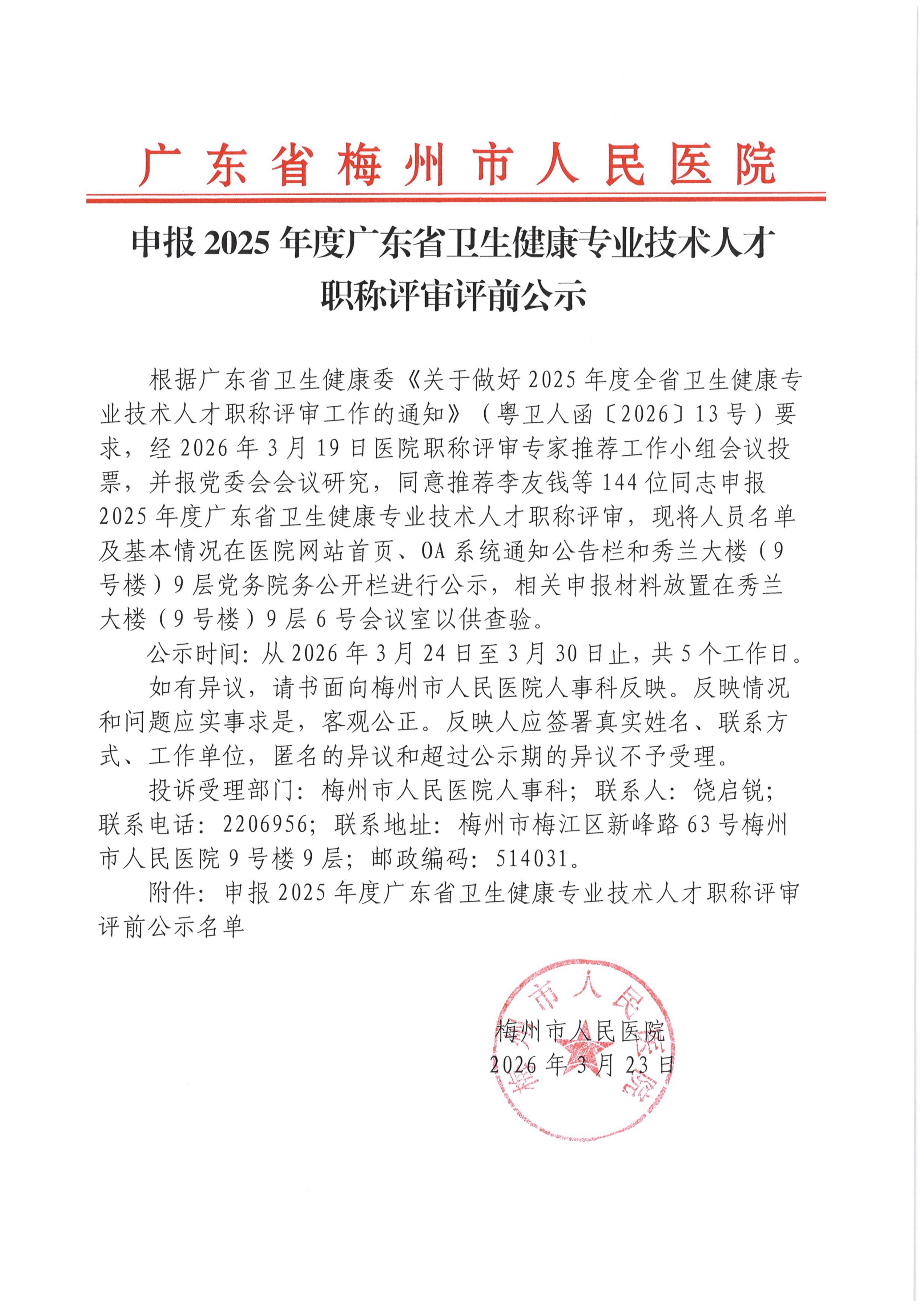 申报2025年度广东省卫生健康专业技术人才职称评审评前公示