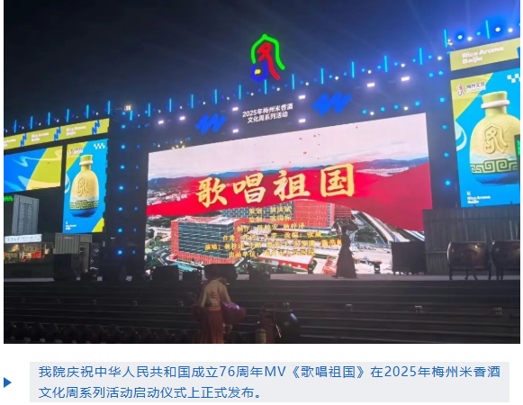 在2025年梅州米香酒文化周系列活动的启动仪式上,我院庆祝中华人民共和国成立76周年MV《歌唱祖国》正式发布。医院医务工作者以歌声为媒,通过《歌唱祖国》的经典旋律,展现了医院发展成就和职工的良好精神风貌。这既是献给祖国的生日礼物,更是医院对守护人民健康的庄严承诺——以歌声铭记初心,用行动践行使命。
