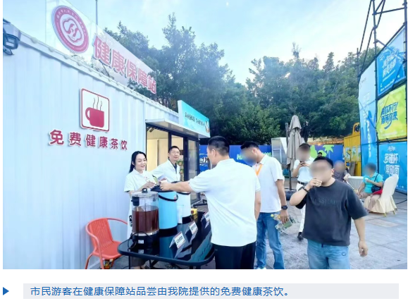 此外,我院在活动主会场梅江区院士广场设立了健康保障站,为市民提供医疗保障、健康咨询等服务,以及补气养血、养阴生津、醒酒护肝等多款免费健康茶饮,吸引了不少市民游客驻足品尝。健康保障站将持续至10月8日,为市民游客的“双节”假期增添一道健康快线。