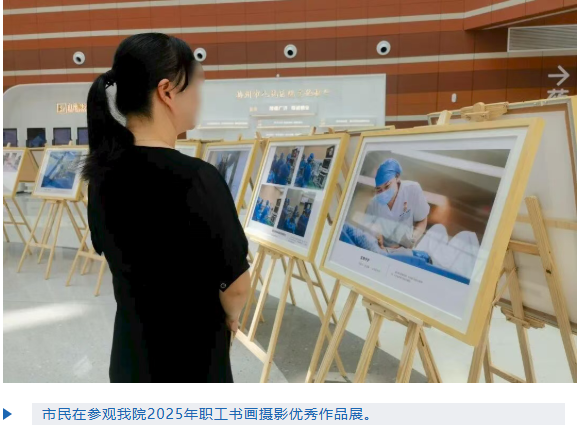为庆祝中华人民共和国成立76周年,展现医院职工爱党爱国、团结奋进的精神风貌,医院工会还举办了“党建引领庆华诞 凝心聚力促发展”2025年职工书画摄影优秀作品展,百余幅书法、绘画、摄影等优秀作品在我院门诊大厅展出,作品主题鲜明、题材多样、内涵丰富,充分展现了医院职工多元绽放的艺术才华和昂扬向上的职业风采,不仅提升了医院的文化软实力,更为社会树立了医者仁心、德艺双馨的典范。