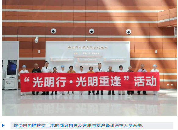 我院自2025年6月启动“‘睛’彩筛查·爱心光明”白内障扶贫手术公益行动以来,已成功帮助78名家庭经济困难患者重见光明,并免除其门诊术前检查和住院手术费用中的个人自付部分。9月29日,医院开展了“光明行·光明重逢”活动,邀请10名接受手术的患者及其家属回院复查、交流生活变化、感受医院服务,进一步延伸关怀、传递温暖,持续深化“光明行”公益品牌内涵。