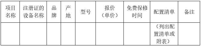 七、报价表格式如下(提供纸质版和电子文档并发至邮箱):