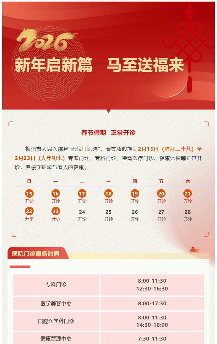 梅州市人民医院春节假期正常开诊