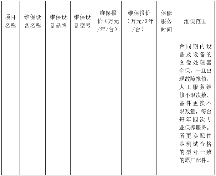 2、设备维保服务方案的详细技术参数;